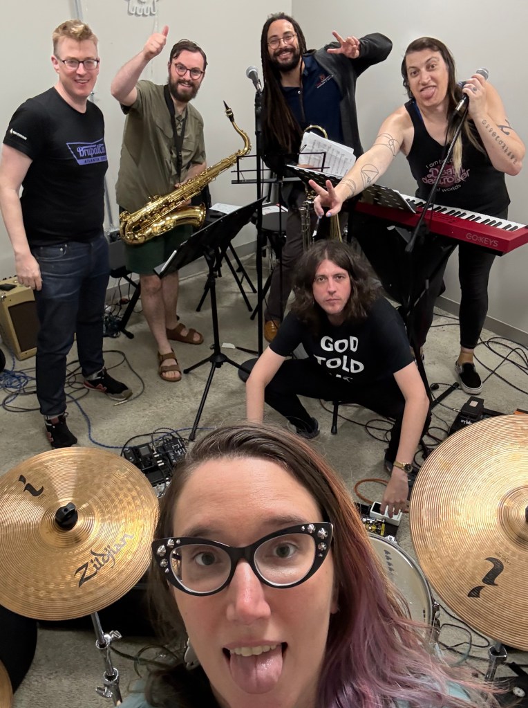 Jace on guitar, keys, and vox, Dee on the drums and vox, Frank on bass, Lucas on sax, Andy on guitar, and Julian on the BONE (hahaha, puns are fun), and our tech crew consists of Tyler.